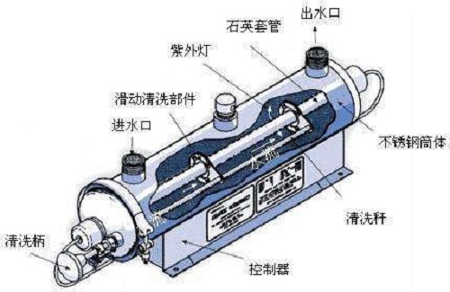 對水進行紫外線消毒按水流狀態分為敞開重力式(明渠式)和封閉壓力式(封閉壓力式)。敞開重力式紫外線殺菌器的燈與水并不接觸,紫外線照在水面上,常用在市政給水處理和市政污水處理。純水系統中使用的紫外線殺菌器為封閉壓力式,封閉壓力式紫外線消毒器具用金屬圓筒把消毒燈管和被消毒的水封閉起來。筒體用不銹鋼制成,其內壁多做拋光處理,以提高對紫外線的反射能力,以增強筒體內紫外線的輻射強度。有的消毒器還在筒內加裝了導流板,改變水流的運行狀態,避免水流死角。